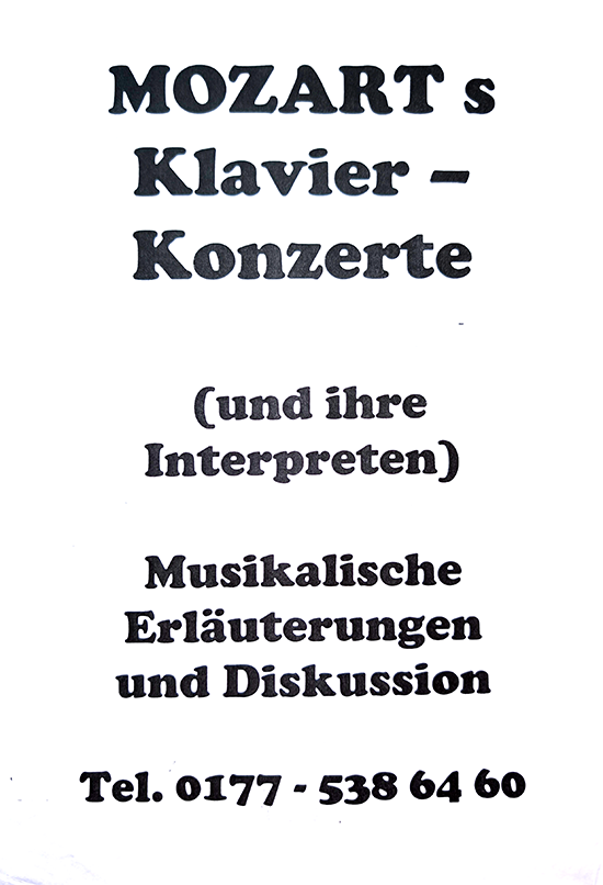 Mozart, Beethoven über Schubert, Schumann, Brahms und Wolf, Schönberg,